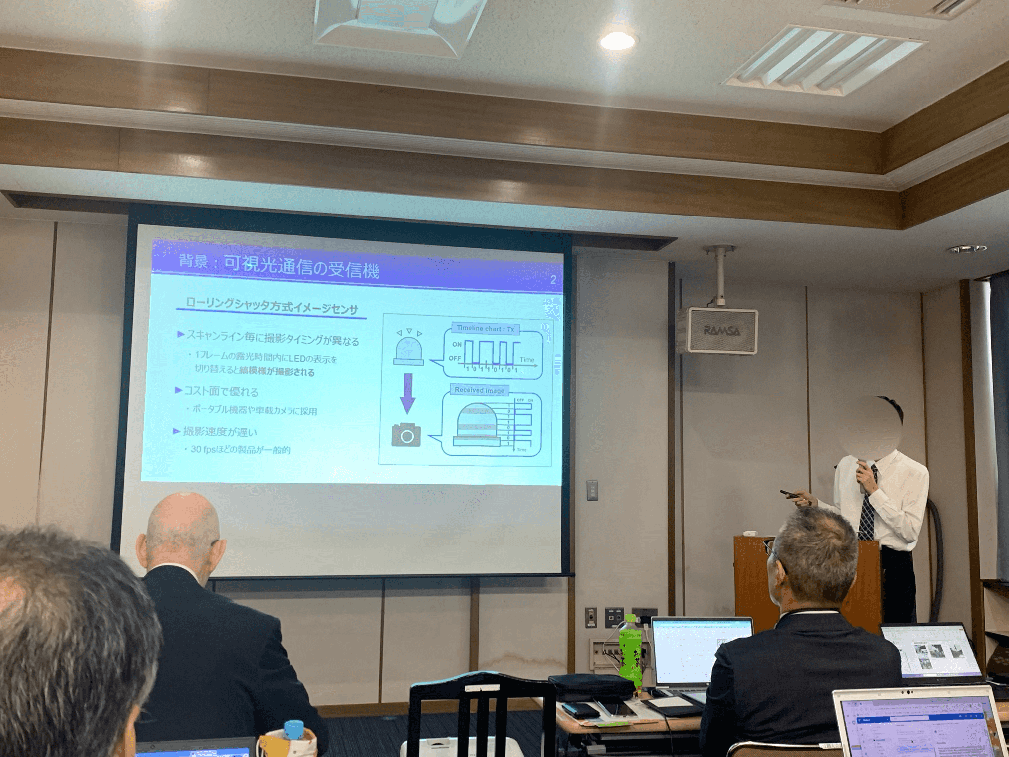 2025/7/4に豊田市・末野原交流館で開催された第二回AA-ITS研究会で発表を行いました.私の発表では,スマートフォンなどによく用いられているカメラを用いた自動車向け通信について報告しました.